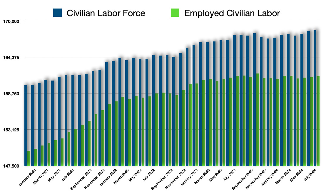 Those not employed are considered unemployed. The math on this is that if those considered within the civilian labor force are not employed, on a percentage basis, they show up as unemployed, and that is why we continue to see this trend moving higher:
