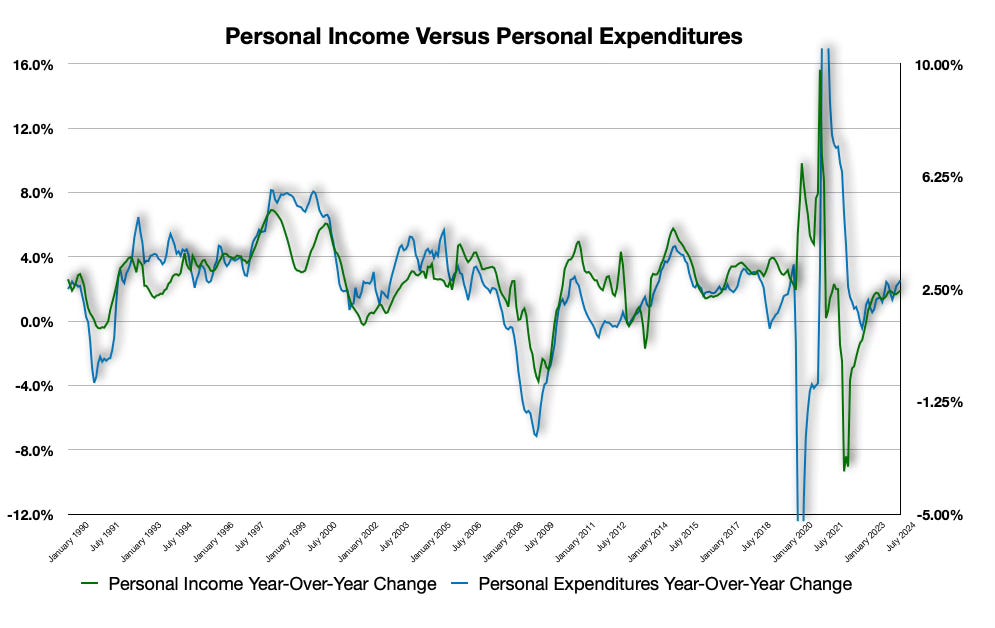 For now, I think employment numbers are going to continue to show weakness, but the increases in personal incomes and expenditures could help to propel the economy forward, along with lower interest rates. I still believe that we see some additional selling through the remainder of the year and into next year. I do not believe the market will get big moves lower in interest rates from the Federal Reserve that could perpetuate the stock market upward. I think the Fed has a lot of work ahead of itself, and this is going to be tricky to balance.