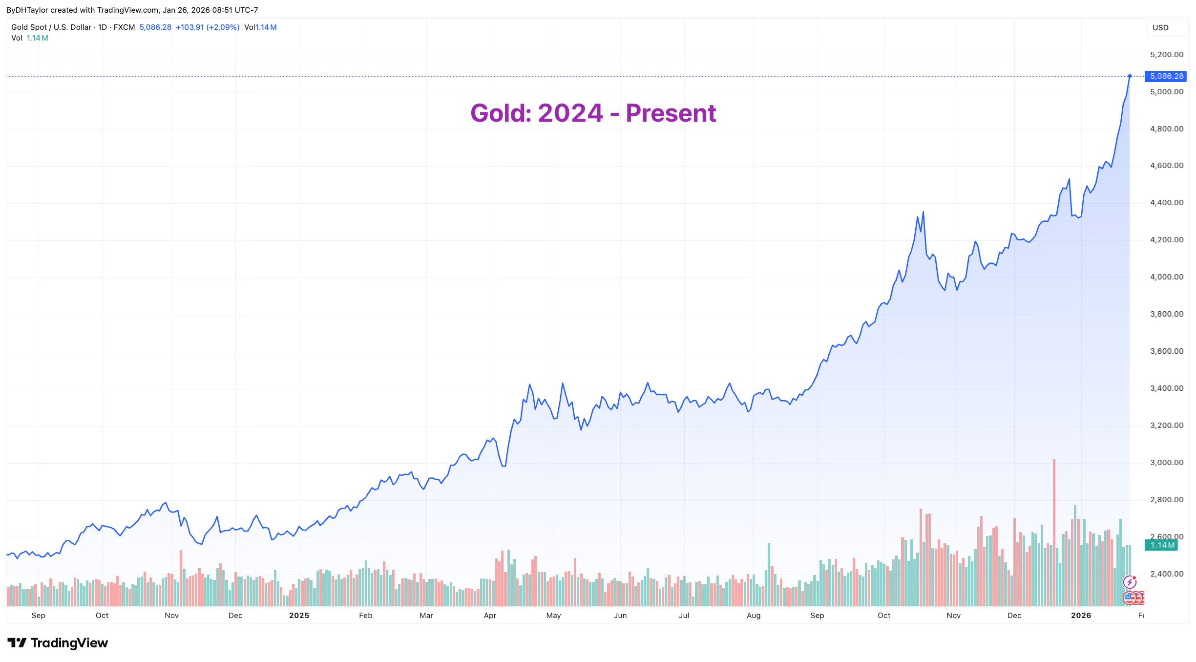 Simultaneously, there has been a large move upward in price for both silver & gold to new, all-time highs with silver hitting nearly $115.00 just today and gold crossed the $5,000.00 level. This shift likely shows that investors worldwide are favoring alternative investments, while at the same time it also shows that precious metals are catching up to price pressures.