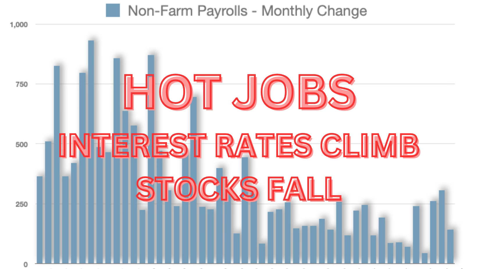 Higher than expected overall job growth has pushed interest rates up, and the stock market is selling off.