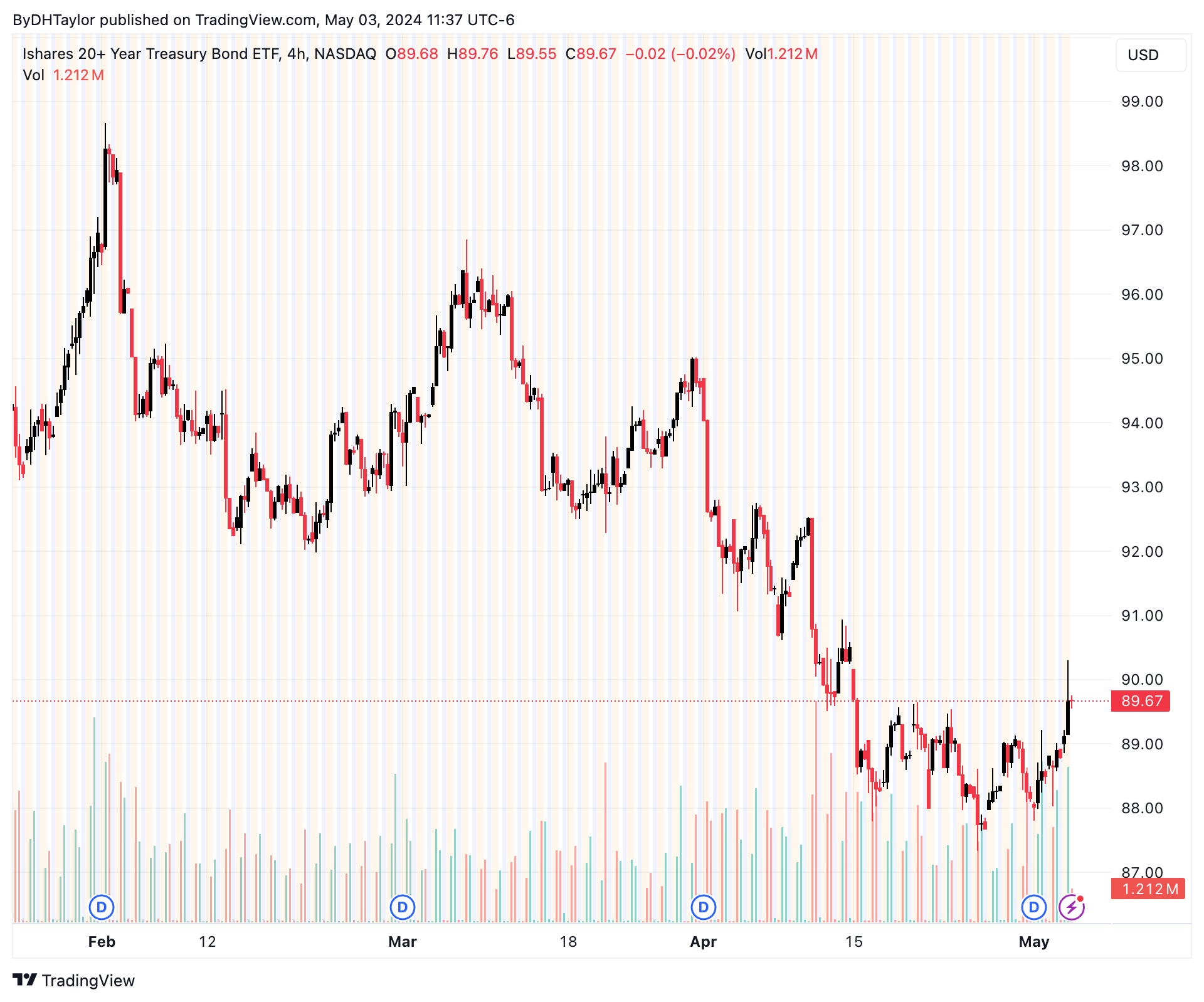 While I do not necessarily see a recession at this stage, a perfect soft landing may not happen, either. In the meantime, I have been accumulating TLT stock this past week and will continue to do so as interest rate levels continually move lower. The stock market may move up today, but I expect that to be short lived and the reality of slower growth rates means stock investors, savvy investors, will take profits. The broader stock market is off its highs, and I think that high level is gone for a while until interest rates get to a far more accommodative level, consumers finish retrenching, and economic expansion gets back under way.