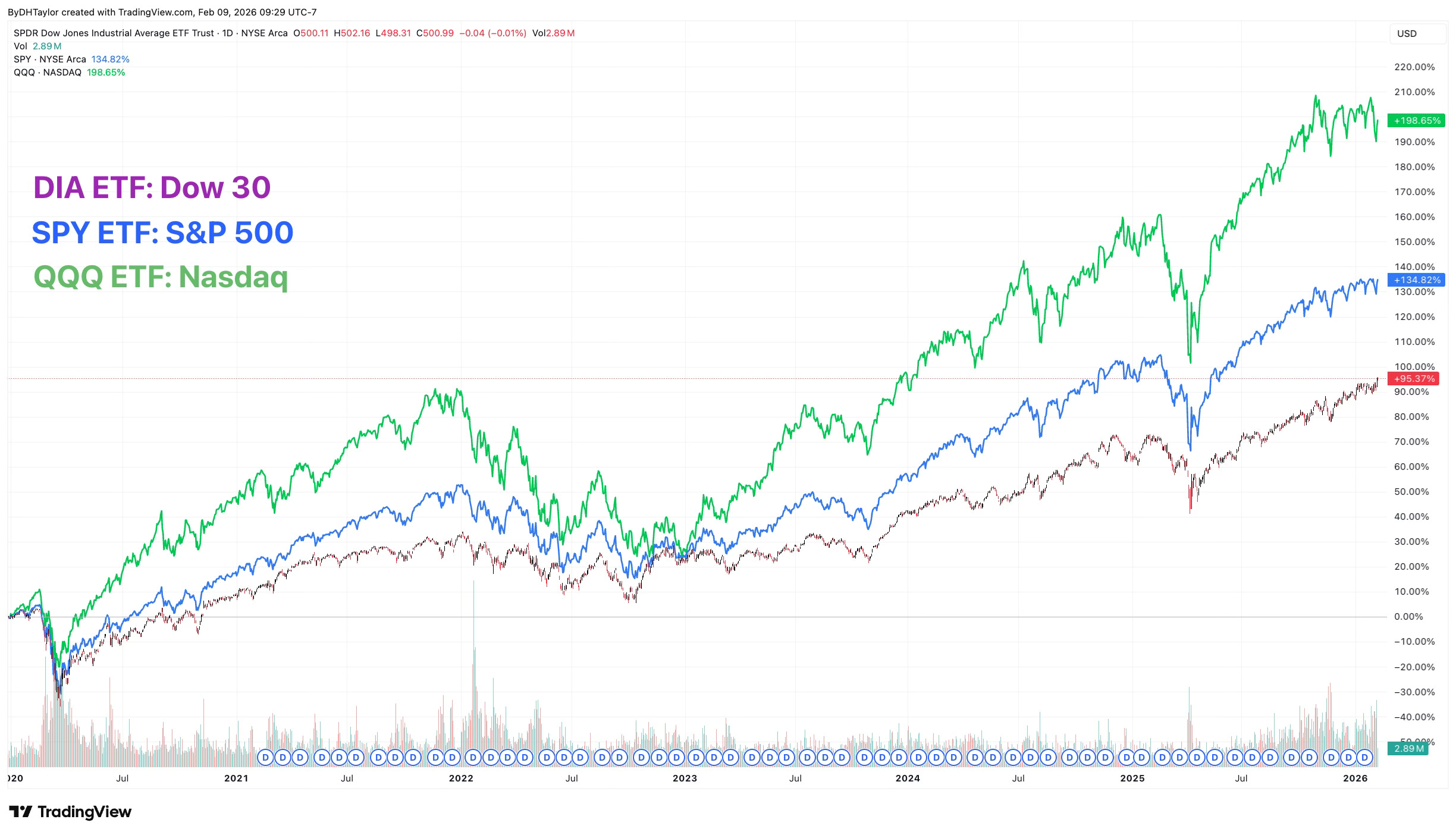 The Dow pushed through the 50,000 level last week, and this week is continuing. There are a few things to point out about this, though. First, since 2020, the Dow average is up impressively 100%. During this same time, however, the Nasdaq average has gained double that at 200% increase. On the one hand, the Dow posting through the 50,000 is a milestone, but it is almost inevitable as the US economy continues to expand. On the other hand, the Dow is actually a laggard in this position, and there were obvious other opportunities—at this point, the Dow may only be catching up.