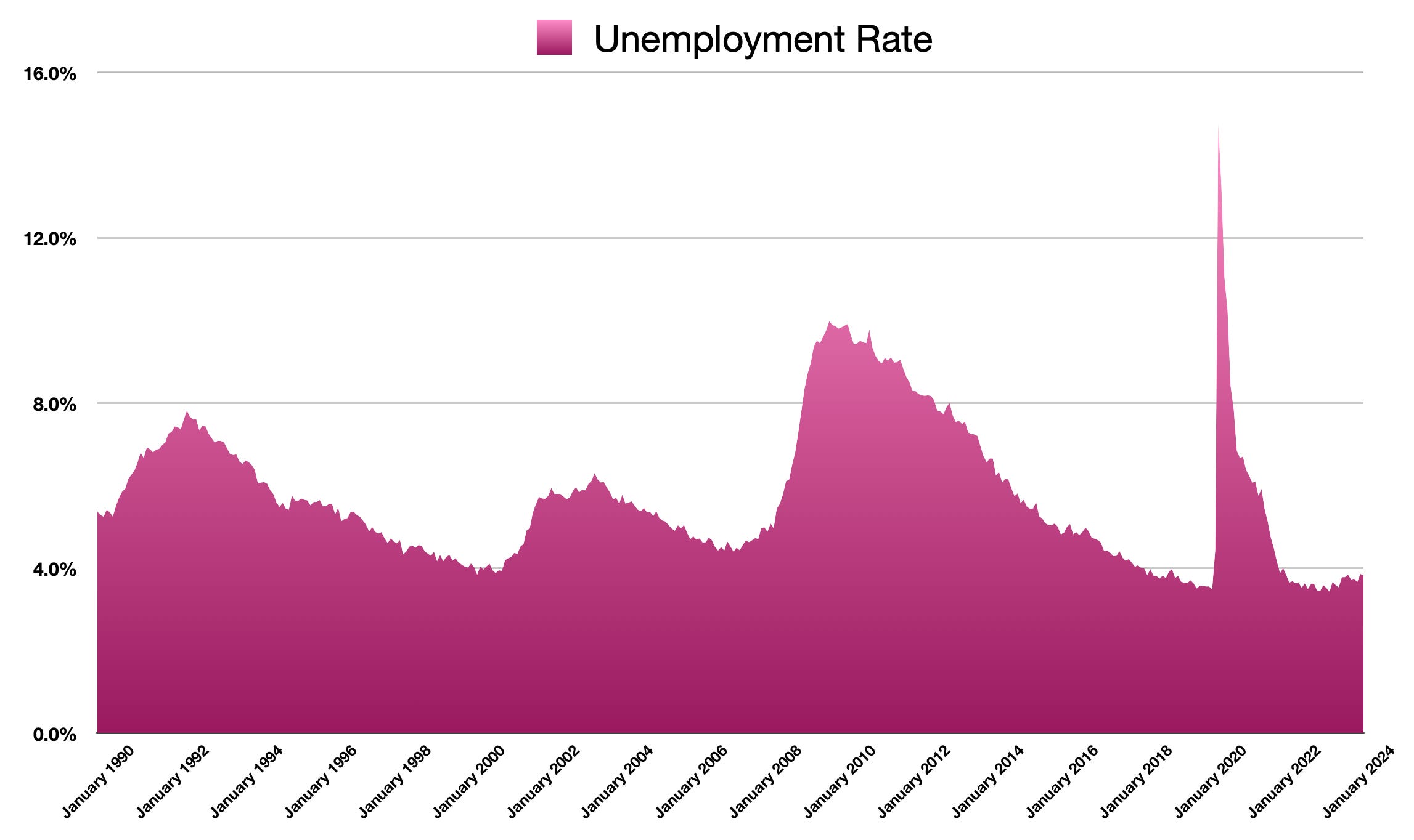 The unemployment rate is sitting at ~3.75%. This is transitory employment, the rate of individuals in between jobs. Considering a classical standpoint, it used to be that full employment was 5.00% - the current rate is well beyond that. Having an employment rate that high would naturally pressure prices upward with too many individuals chasing limited, or scarce goods & services. This is part of the reason that price pressures are still sticky and the Federal Reserve has not gotten inflation down to its all-too-crucial 2.00% target rate - we are about 2.85% and starting to move back higher.