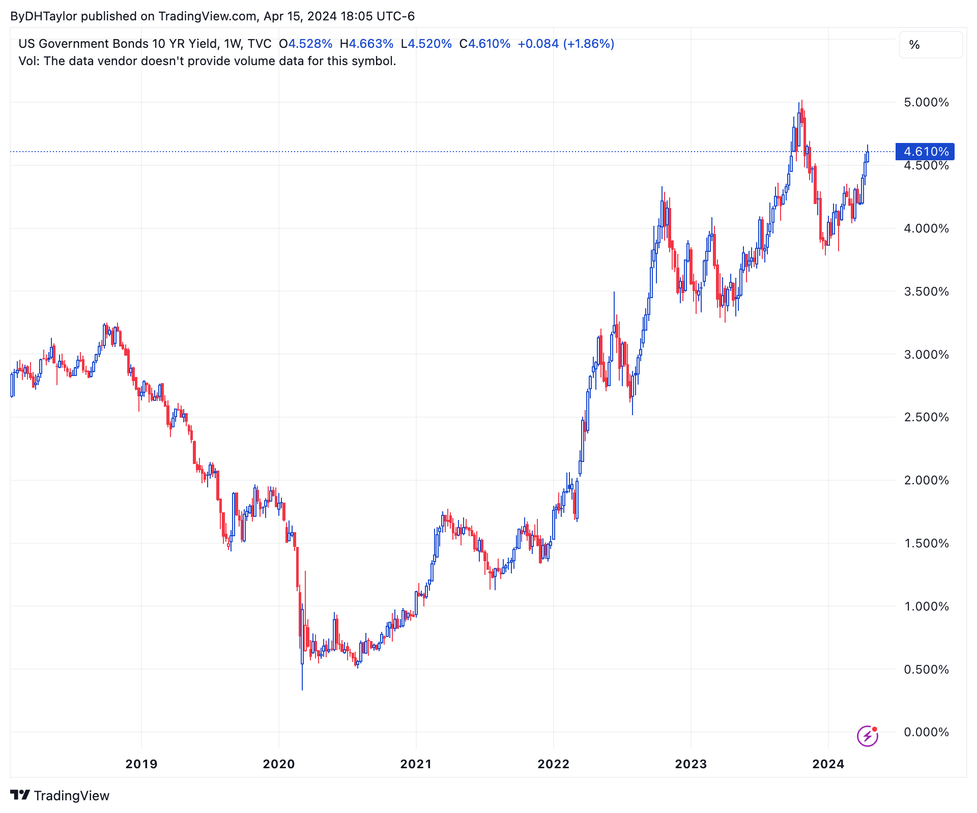 Now, however, the market is starting to take away the potential of interest rate declines. With sticky inflation and an employment situation that is robust, there really is no reason for the Federal Reserve to lower rates at this point.