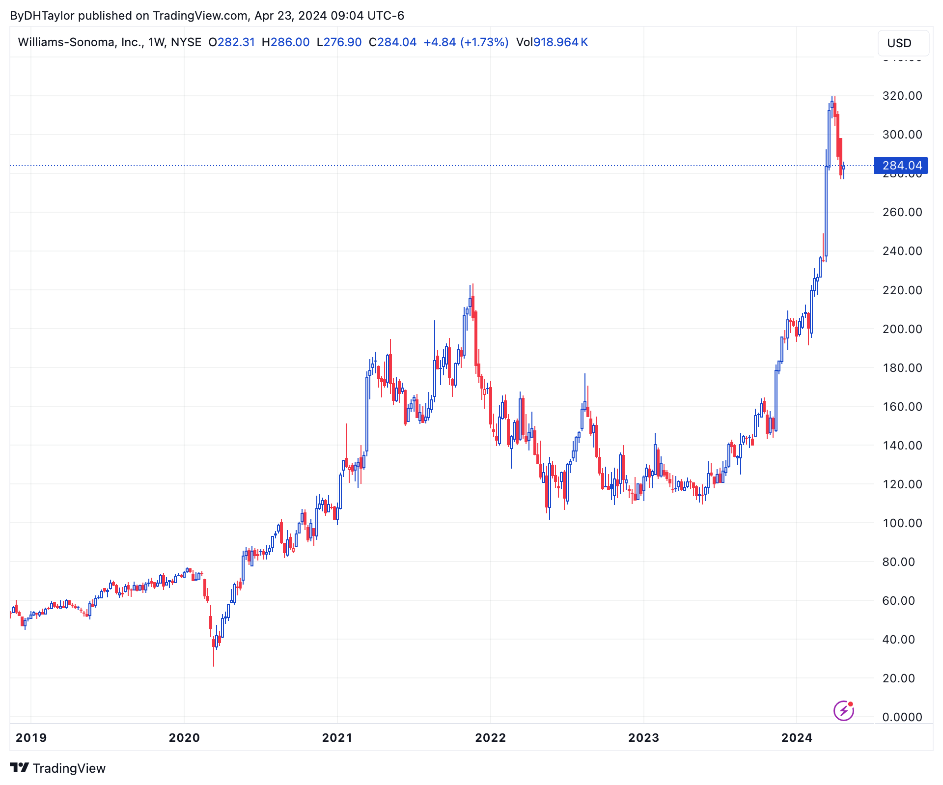 Williams Sonoma stock has surged on its latest earnings release. Last time I covered WSM stock when it was ~$165.00, I was calling for a move higher - it is currently at $285.00. WSM stock was undervalued from a value investment position. Now, however, WSM stock is more appropriately priced. What does a value investor do with WSM stock with valuations at this level?